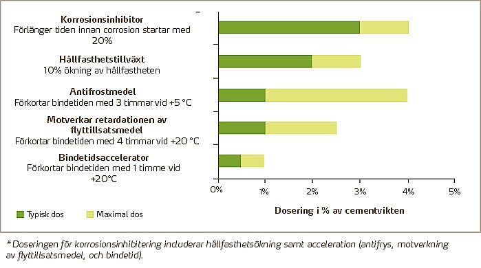 - Förbrukningen av vatten och cement optimeras när du använder superplasticerare och NitCal.