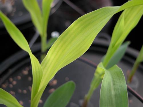 Kan bli förväxlas med manganbrist, men manganbrist är mycket sällsynt i majs.