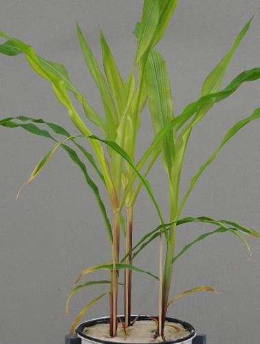 En rödbrun rand utvecklas längs bladkanten på de gulgröna bladen.
