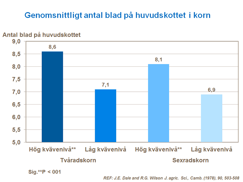 För vårkorn är perioden för bildandet av blad och sidoskott mycket kort, därför är tidig tillförsel och höga kvävegivor viktigt för att nå snabb tillväxt tidigt och ett stort antal sidoskott.