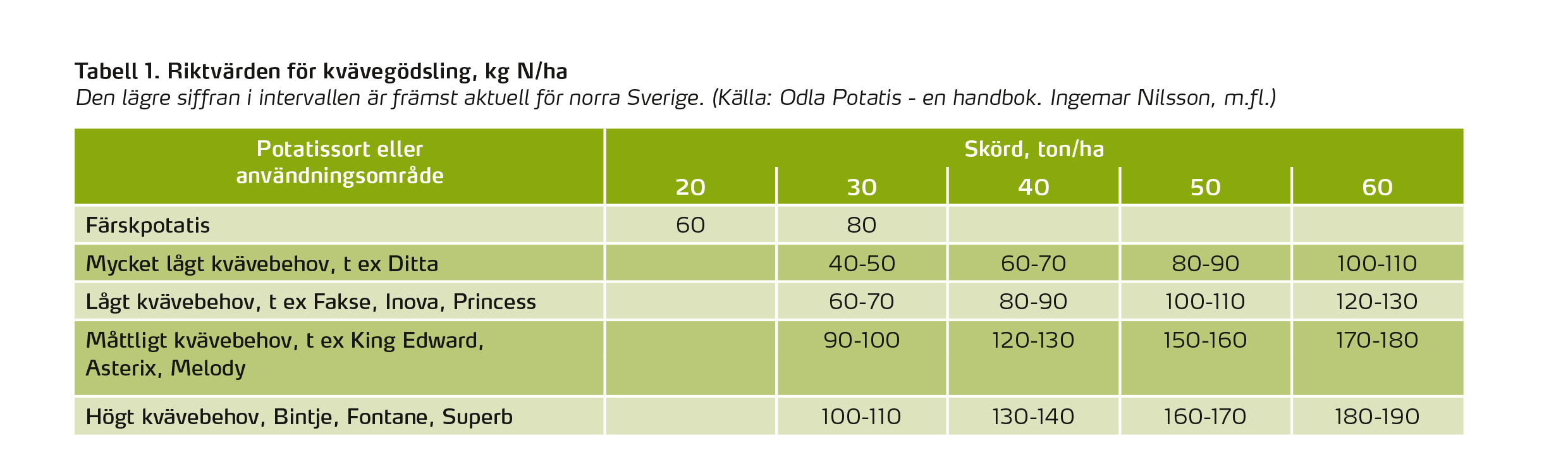 Den lägre siffran i intervallen är främst aktuell för norra Sverige. (Källa: Odla Potatis - en handbok. Ingemar Nilsson, m.fl.)