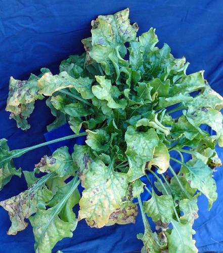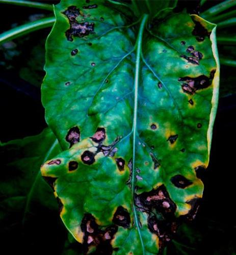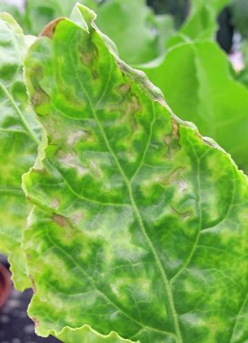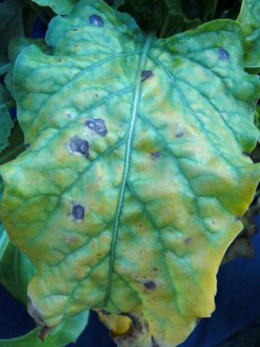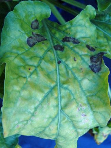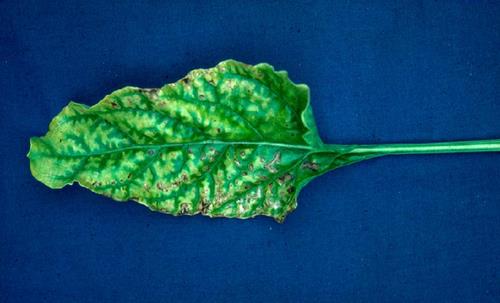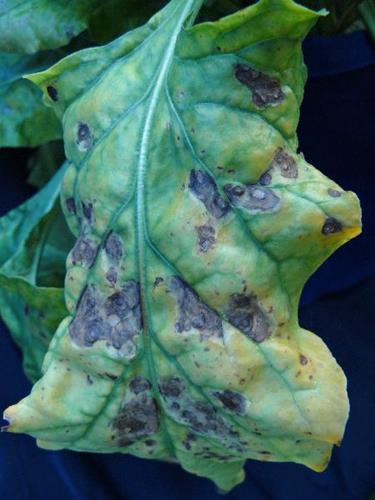 Efterhand övergår klorosen i nekrotiska fläckar.