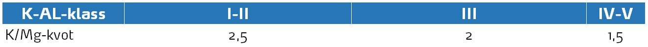 Tabell 3. Riktvärden för K/Mg-kvoten (Klicka på tabellen för större bild)