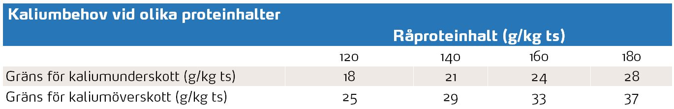 Tabell 1. Kaliumbehov vid olika proteinhalter (Klicka på tabellen för större bild)