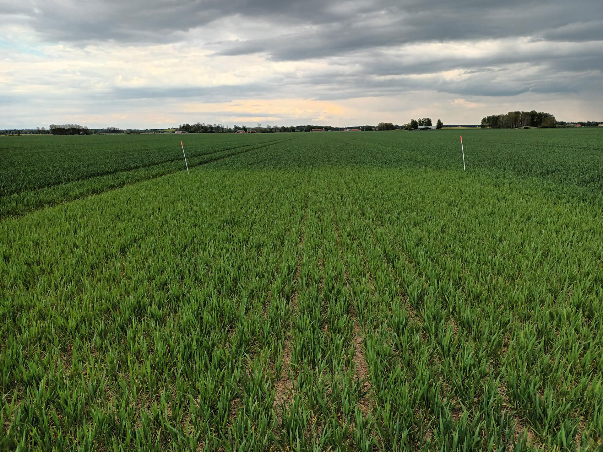 I område syd är många fält nu i DC 32 (nod 2 kan kännas) och det totala kväveupptagen är till stor del i spannet 70 – 90 kg N/ha. Årets markleverans är i genomsnitt något lägre än den vi utgår ifrån när vi gör gödslingstabeller. Nu gäller det att förse plantorna med det kväve som krävs för den skördepotential som finns. Anpassa kompletteringarna efter nollrutor och din bedömning av skördepotential utifrån rådande väderläge. Var inte för pessimistisk på lerjordar med god vattenhållande förmåga och djupt rotdjup. En del har redan kompletteringsgödslat innan regnet som kom i mitten av innevarande vecka. Finns det stora kompletteringsbehov så rekommenderar vi att en uppdelning av kompletteringen i två delar: en giva nu och en slutjustering om 1–2 veckor.
